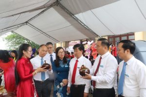 Các đại biểu thăm quan khu vực trưng sản phẩm đặc trưng của hội viên nông dân xã Phù Lãng.