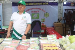 Anh Phan Duy Thơ giới thiệu, bày bán các sản phẩm của Linh Đăng Foods tại Lễ hội Lim