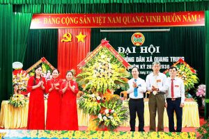 Lãnh đạo Hội Nông dân tỉnh tặng hoa chúc mừng Đại hội đại biểu Hội Nông dân xã Quang Trung lần thứ I, nhiệm kỳ 2025-2030.