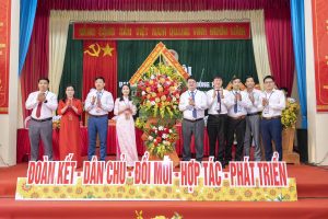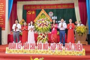 Đại diện lãnh đạo Đảng ủy, UBMTTQ, các tổ chức chính trị – xã hội xã Đông Phú tặng hoa chúc mừng Đại hội.