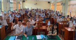 Cán bộ, hội viên nông dân tham gia cài đặt nền tảng số Nông dân Việt Nam trên điện thoại di động