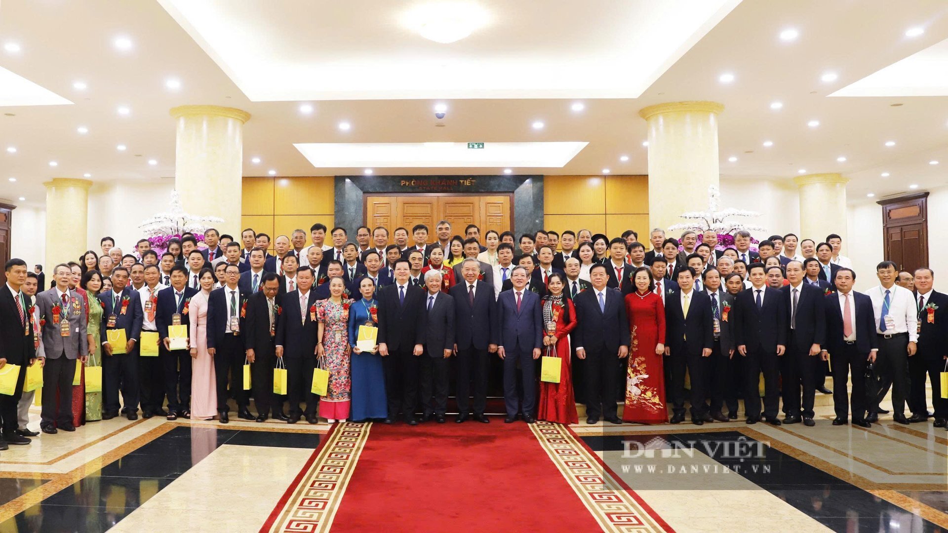 Tại buổi gặp mặt đoàn Nông dân Việt Nam xuất sắc, Nhà khoa học của Nhà nông 2025, ngày 14/10 vừa qua tại trụ sở Trung ương Đảng (Hà Nội), Tổng Bí thư Tô Lâm nồng nhiệt chào mừng và biểu dương 95 tấm gương nông dân và nhà khoa học tiêu biểu, đại diện cho hàng triệu nông dân, trí thức trên cả nước đã có những đóng góp xuất sắc trong lao động sản xuất, nghiên cứu khoa học, góp phần xây dựng nền nông nghiệp Việt Nam phát triển toàn diện và bền vững. Ảnh: Phạm Hưng.
