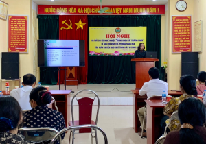 Báo cáo viên Nguyễn Thị Thu Nga, cán bộ Trung tâm cung ứng dịch vụ sự nghiệp công phường Nhân Hòa truyền đạt tại lớp tập huấn.