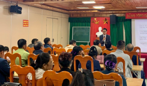 Giảng viên Nguyễn Sỹ Hùng – Viện Đào tạo, Bồi dưỡng cán bộ và Nghiên cứu khoa học truyền đạt tại lớp tập huấn.