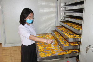 Bà Vũ Thị Phương kiểm tra sản phẩm dứa sấy.