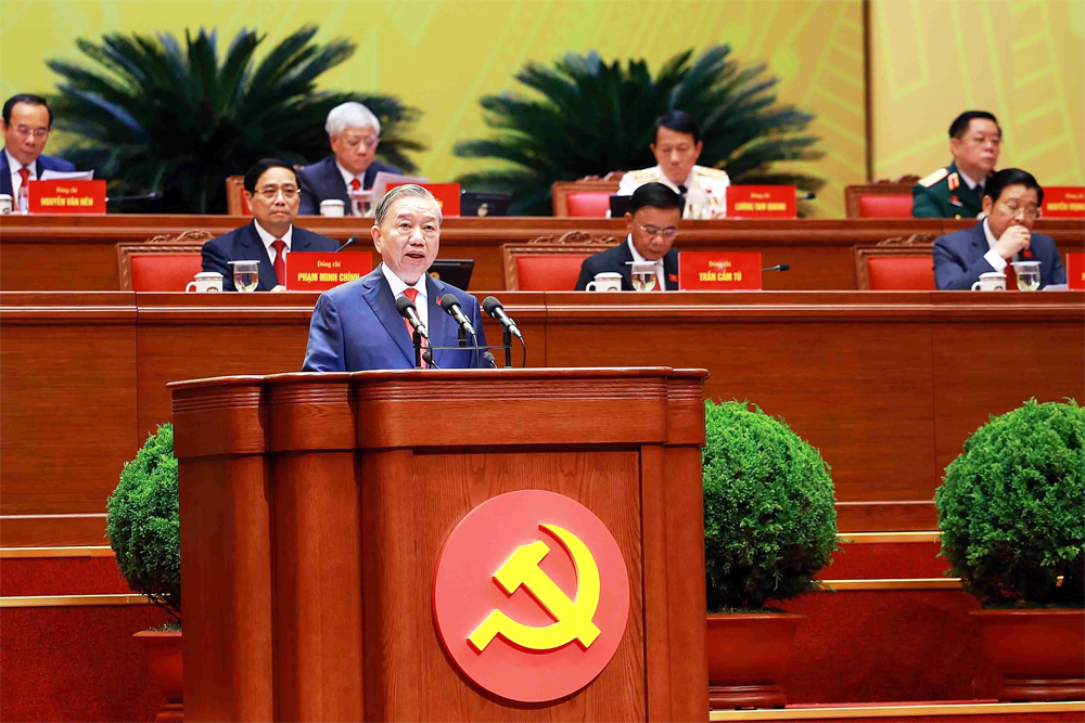 | Tổng Bí thư Tô Lâm trình bày Báo cáo của Ban Chấp hành Trung ương Đảng khóa XIII về các văn kiện trình Đại hội XIV của Đảng. |